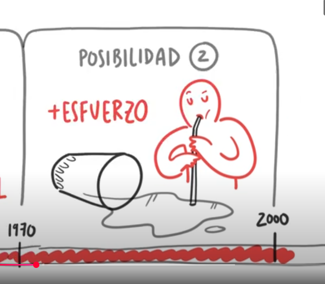 Ampliem les captures de pantalles de l'entrada anterior, del minut 1:30 al 3:00 per a fer més visible les 4 etapes d'extracció del petroli segons Antonio Turiel.